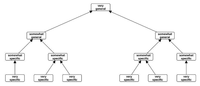 책임연쇄 트리연쇄반응트리는 단순한 트리 구조가 아니라 단계마다 가장 전반적 수준부터 가장 구체적 수준까지 특이성 수준을 나타내는 계층으로 구성된다: