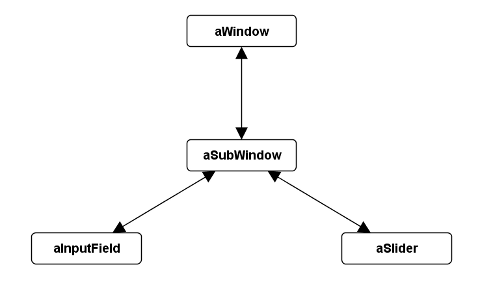윈도우 창 자체는 트리의 루트, 가지 노드로 구성된 윈도우의 하위뷰들과 그들의 하위뷰들, 마지막으로는 잎(leaf) 노드인 위젯으로 구성된다. 트리의 각 노드는 그것의 부모 노드를 컨테이너라고 부르고 그것의 자식 노드는 컴포넌트라고 부른다. 각 노드가 정확히 하나의 부모를 가지기 때문에 (정의상 부모가 없는 루트는 제외) 그래프가 아니라 트리가 된다.