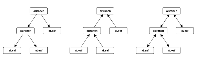 아래 그림에서 나타나듯이 트리를 구성하는 방법에는 3가지가 있다: 상향식, 하향식, 이중연결식. 노드와 노드들 간 관계는 세 가지 구조 모두 동일하다. 그러나 화살표의 방향이 서로 다르게 구성되어 있다. 상향식 트리에서 각 가지(branch)는 그의 자식(children)을 모두 가리키기 때문에 클라이언트는 가지에게 자식을 요청할 수 있지만 노드는 그 부모(parent)를 알지 못한다. 하향식 트리의 경우, 각 노드가 부모를 가리키지만 가지는 자식을 알지 못한다. 이중연결 트리에서는 각 노드가 부모와 자식을 모두 알고 있다. 화살표 방향은 트리에서 메시지 방향을 결정한다: 아래, 위, 양방향. (Chain of Responsibility (225) 참조)