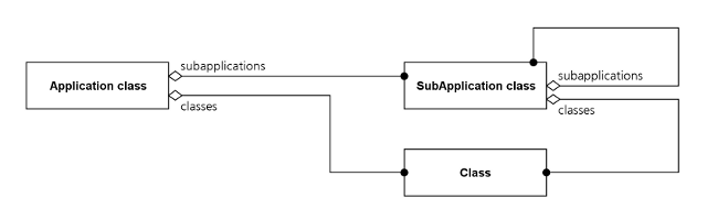 많은 스몰토크 개발 프로젝트들은 ENVY/Developer를 사용하는데, 이는 아마도 스몰토크에 사용되는 가낭 유명한 코드 관리 시스템일 것이다. ENVY에 소수 코드 통제의 주요 유닛은 application 이라 알려진 클래스의 논리적 그루핑(logical grouping)이다. 다음 다이어그램이 나타내듯 애플리케이션은 애플리케이션 내의 클래스의 논리적 그루핑이기도 한 subapplication와 클래스를 모두 포함한다. 하위애플리케이션은 결국 더 많은 하위애플리케이션과 클래스를 얻을 수 있다: