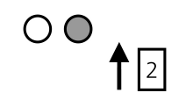 이제 사용자는 Undo 메뉴항목을 선택한다. 우리는 히스토리 목록에서 이전 Command를 검색하여 위치 표시기를 낮추고 그에 상응하는 집합체 엔트리 값을 (두 번째, 인덱스 1에 상응하는) 리턴한다. 이 시점에 위치 표시기는 그대로 둔다. 따라서 첫 번째 undo 후에는 다음과 같은 모습일 것이다: