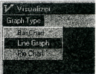 비주얼라이저 창에는 사용자가 그래프 유형을 선택하게 해주는 메뉴가 있다. 메뉴에서 그래프 유형을 선택하고 나면 GraphVisualizer가 적절한 Grapher 서브클래스를 인스턴스화하여 grapher 변수에 인스턴스를 보관한다. 그래프 선택 메뉴는 다음과 같은 모습이다: