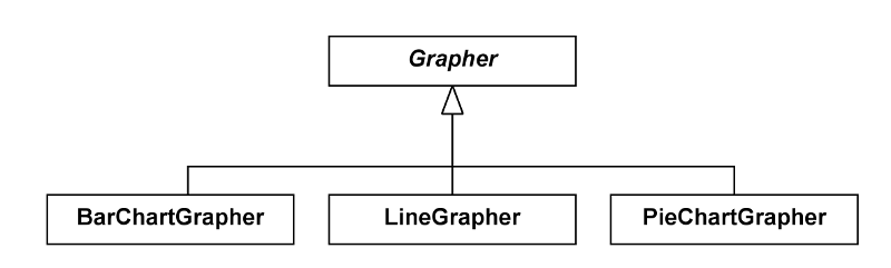 grapher 인스턴스는 애플리케이션이 그래픽 시각화 그리기 업무를 위임하는 객체를 가리킬 것이다. 이 객체는 다음 Grapher 하위계층구조의 클래스 중 하나로부터 인스턴스화될 것이다:
