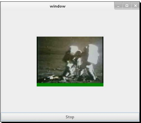 - 프로그램을 빌드하여 실행하라. 아래 스크린샷처럼 비디오를 재생 및 중지할 수 있고, 프로그램을 종료할 수도 있다.