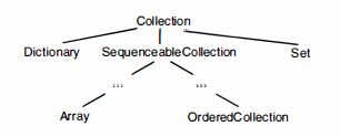 - ↑ 일부 dialect에서 add:와 remove:는 Collection 내 순수 가상 (subclassResponsibility) 메서드로, 서브클래스가 추가와 제거를 지원해야 할 의무가 있음을 상기시킨다.