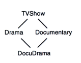 특정 텔레비전 프로그램들은 역사적 문제의 극화(dramatization)와 기록성 다큐멘터리 장면을 결합하여 다큐드라마(docudramas)를 생성한다. 이러한 상황에 대한 다중 상속 계층구조를 우측에 표시하겠다.