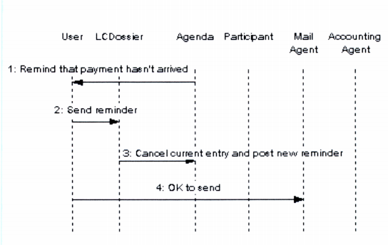상호작용 다이어그램으로 메시지 흐름을 문서화하는 데에 얼마든지 시간을 투자할 수 있다는 말은 아무리 반복해도 지나치지 않는다. 물론 모든 메시지 흐름(message flow)이 컴퓨터에서 작동하는 데에 소요되는 시간을 받을 자격이 있는 것은 아니다: