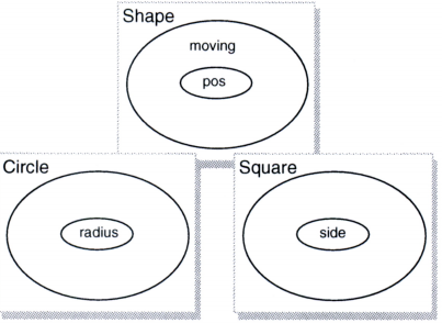 따라서 Circle과 Square 클래스는 각각 render과 같은 메서드를 가질 것이며, Shape 클래스는 동일한 이름으로 된 subclassResponsibility 메서드를 가질 것이다. Shape>>render는 각 서브클래스가 렌더링을 지원해야 하는 의무를 문서화하지만 그 자체는 어떤 일도 하지 않는다. 애플리케이션이 진화하면서 추가 shape 클래스들이 발생할 것이며, 각각은 고유의 render 메서드를 필요로 할 것이다. 다시 말하자면 shapes는 다형성(polymorphic)이다. 앞장의 예제에서와 같이 클라이언트 코드, 이번 경우로 말하자면 view는 shape의 새로운 클래스를 도입하더라도 영향을 받지 않는다.