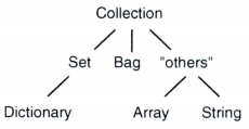 이 계층구조는 자연스러운 타입 관계를 포착하지 못하는데, 그 이유는 더 당혹스럽다-Dictionary가 Set로부터 상속 받기 때문이다. 생산자는 구현을 이유로 이 디자인을 선택했다: set 내에서 캡슐화된 것은 array로, dictionaries가 고유의 private 목적을 위해 상속한 것이다.