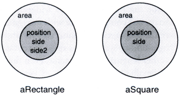 아무 객체 지향 환경을 골라 Rectangle과 Square, 두 클래스를 생각해보자. 스몰토크는 걱정하지 마라; 이번 장의 앞부터 시작해 4개 절은 객체 지향 언어와는 무관하다. 여기 rectangle과 square 의 인스턴스가 있다: