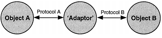 이 모든 클래스의 인스턴스들의 일반적인 목적은 두 가지 다른 객체 간 커넥터 또는 어댑터 역할을 수행하는 것이다. 아래 다이어그램은 이것이 어떻게 작용하는지를 보여준다. 어댑터는 각 객체가 전송한 메시지 혹은 프로토콜을 다른 객체들이 이해하는 메시지로 해석한다. 이 덕분에 앞의 그림을 예로 들자면, 객체 A와 객체 B는 함께 작업하도록 빌드할 필요 없이 작업할 수 있는 것이다.