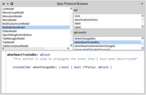 3. The "ProtocolViewer": 하나의 WidgetClassList 와 두 개의 ProtocolMethodList 의 조합으로, AbstractWidgetModel 의 모든 하위 클래스의 프로토콜 api 및 api-event 의 메서드를 검색.