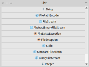 ListModel 은 단순한 텍스트 이상의 것을 표시할 수 있으며, 모든 종류의 위젯을 시각화 할 수 있습니다. displayBlock: 위젯에 buildWithSpec 메시지를 보내면 됩니다. 예를 들어, 그림 9-1 처럼 Files 패키지의 클래스 주석을 표시하는 스크롤 가능한 버튼 목록을 보시면 됩니다.