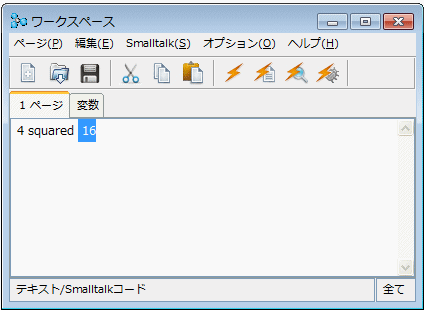 숫자 4는 SmallInteger클래스의 인스턴스입니다. Integer클래스의 서브셋(부분집합)(참고로 integer는 정수입니다)인 SmallInteger클래스는 정수를 생성하는 방법이나 squared가 무엇을 실행할 수 있는지 알고 있습니다. 객체인 4(SmallInteger클래스의 인스턴스)에는 squared메시지가 전달됩니다. Smalltalk 입장에서 보자면, “나는 무언가를 발생시키기 위한 정보를 가지고 있습니다. – 메시지는 객체에 대하여 전달됩니다”가 되며, 4 곱하기 4가 실행되어, 식 “4 squared” 옆에 16이 표시됩니다.