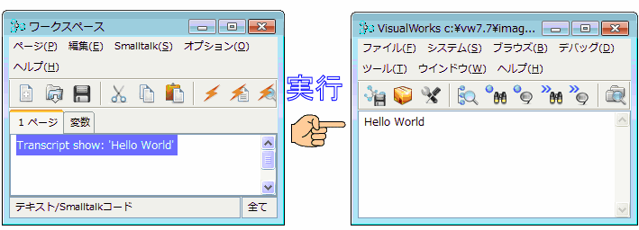 그림 2-4. Hello World를 VisualWorks의 System Transcript에 표시