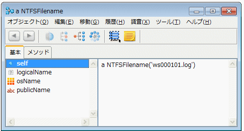 두 가지 뷰를 가진 Inspector화면이 표시됩니다. 이때 윈도우의 타이틀이 아까와는 다르다는 점에 주목해주십시오. 예를 들자면, WindowsNT의 경우는 a NTFSFilename, Linux/UNIX의 경우엔 a UnixFilename로 표시됩니다. Windows 9X에서는 a FatFilename로 표시됩니다. Smalltalk가 이 문자열을 Filename로서 "인식하고 있다는" 증거입니다.