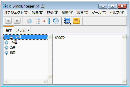 세 번째 행은 다른 언어에서는 일반적이지 않을 수도 있습니만Smalltalk에서는 전형적인 식입니다. myFile 객체는 2행째에서 작성되어 있습니다. 그리고 myFile에 파일 크기를 바이트로 계산하는 fileSize 메시지를 전달하고 있습니다. Inspect를 선택했으니 이 값은 Inspector 화면에 표시됩니다.