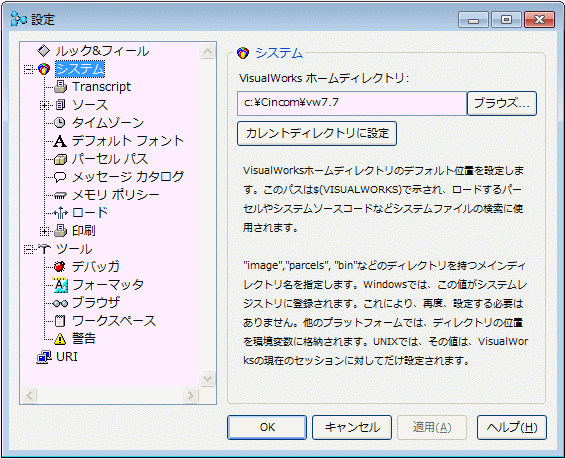 "홈 디렉토리"는 VisualWorks가 적절히 기능하도록 바르게 설정할 필요가 있습니다.