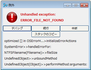 이것은 두 가지 좋지 않은 의미가 있습니다. 이곳에서의 목적은 VisualWorks가 로그파일에 억세스할 수 있는가를 확인하는 것입니다. ERROR_FILE_NOT_FOUND메시지에서 추측 하건데, 다이얼로그 박스는 VisualWorks가 지정파일을 발견하지 못했다는 것을 나타내고 있습니다. 그 이유로 두 가지 경우를 생각해 볼 수 있습니다.