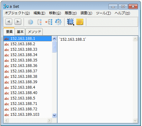 2. 그림 5-1에는 Set의 IP 어드레스의 컬렉션이 표시됩니다. 실제로 IP 어드레스의 집합을 확인할 수 있습니다. 그림 5-2에서는 기본탭에서 tally가 선택되어 그 내용을 표시하고 있습니다. tally(이 집합의 단위수)의 값은 93입니다. 이것은 Set(집합), 위와 같은 경우에는 IP 어드레스, 혹은 “Hit”의 유니크한 항목수입니다.