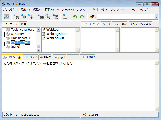 앞서 작성했던 헬프 윈도우를 가진 WebLogAbout 클래스가 있습니다. 아직 소속 패키지를 지정하지 않은 경우엔 이곳에 속합니다. 그러면 WebLog와 같이 WebLogStats 패키지에 소속시킵시다.