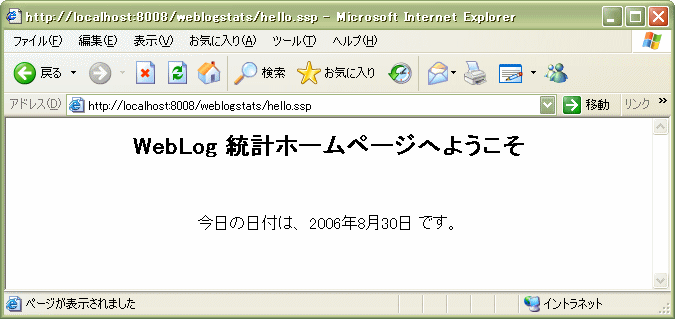 17. hello.htm링크를 클릭합니다. 그리고 hello.ssp 링크를 클릭합니다. 두 번째 페이지(hello.ssp)에 표시된 날짜는 현재날짜입니다. ![]() Smalltalk 코드를 인식할 수 있는 Web서버만이, 올바르게 "ssp"다룰 수 있습니다. 올바르게 표시되었다면, WebToolkit을 사용해서 구성된 사이트가 제대로 동작하는 것을 의미합니다. | |
