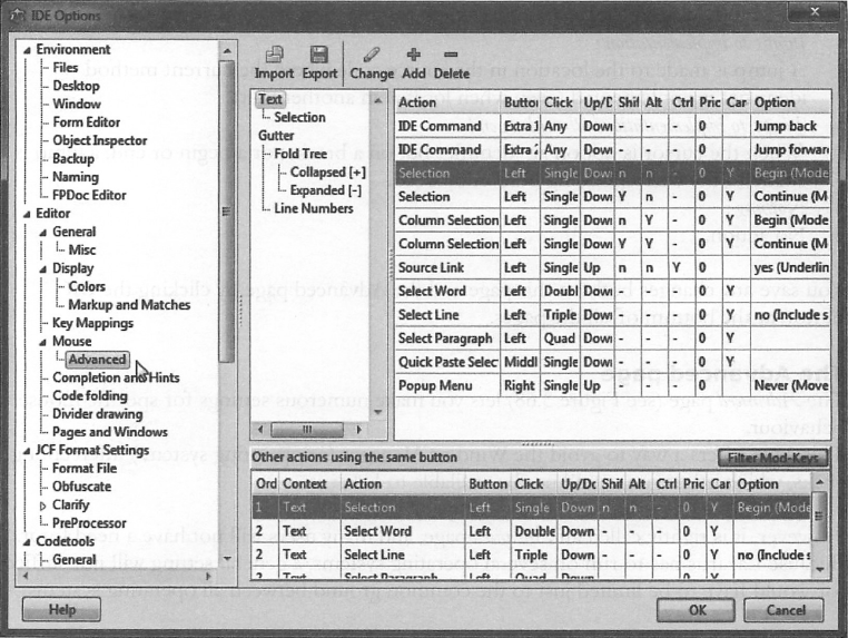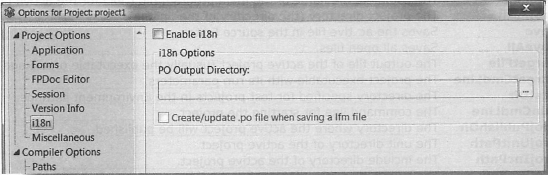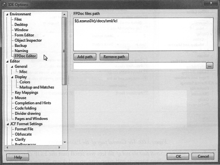 Free Pascal Compiler, Free Pascal sources, Lazarus sources 노드들은 자동으로 생성되며 이 대화창에서는 편집할 수 없다.
