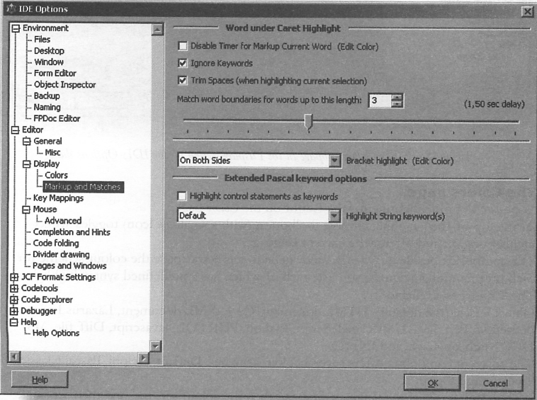 Ignore Keywords를 활성화하면 하이라이트로부터 키워드를 제외시킨다. 무엇이 키워드인지는 선택된 | Ignore Keywords를 활성화하면 하이라이트로부터 키워드를 제외시킨다. 무엇이 키워드인지는 선택된 문법 하이라이터에 따라 좌우된다 (기본 값: Object Pascal). | ||