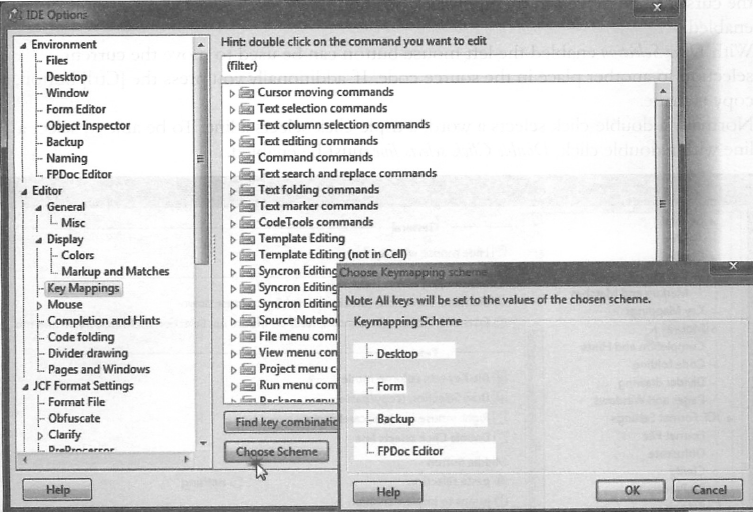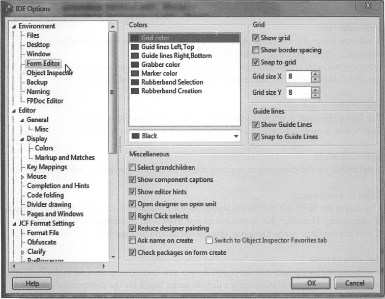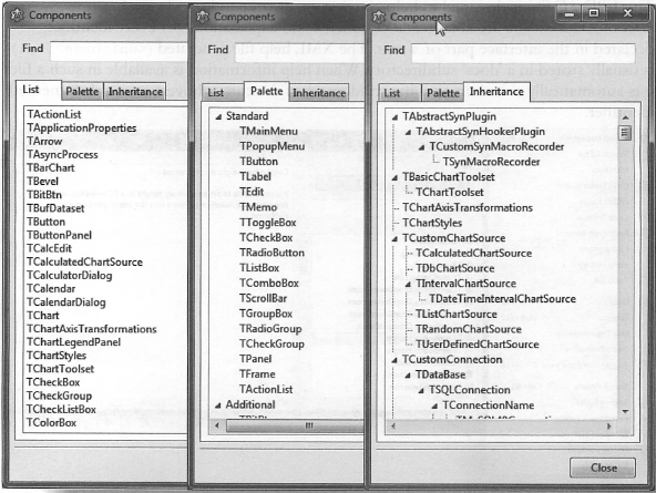 일부 위젯 셋의 경우 에디터에 열린 각 파스칼 코드 유닛이 열거된다 (폼과 함께).