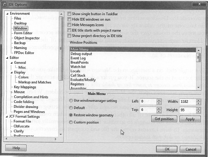 라자루스 0.9.28 버전부터 Code Explorer 에 관한 설정들은 IDE Options 대화창에 통합되었다.