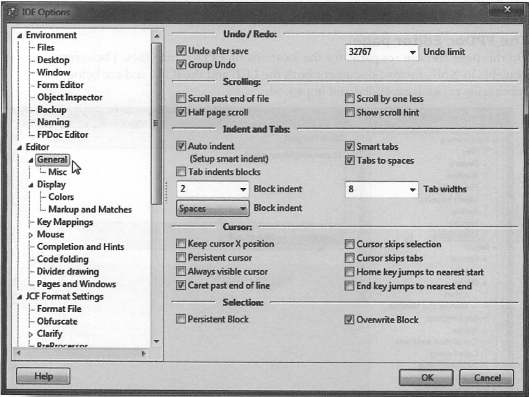 몇 자를 들여 쓸 것인지는 Environment ⇒ Options... ⇒ Editor ⇒ General ⇒ Indent and Tabs ⇒ Block indent 를 이용해 변경할 수 있다.