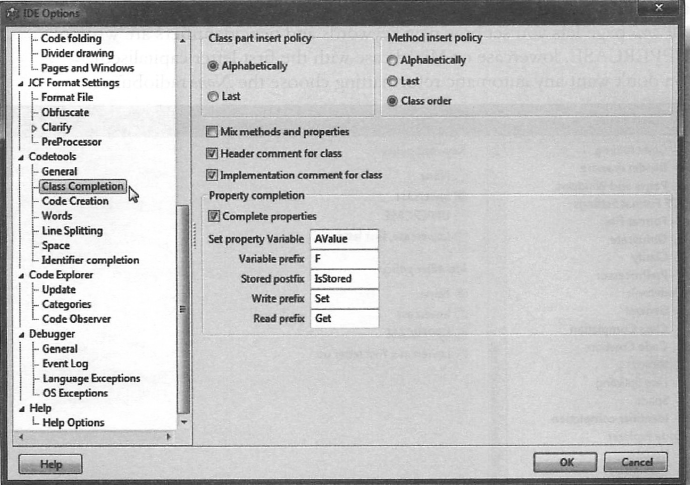 식별자에 여러 섹션이 있는 경우 (에: Form1.Button1.Color) 각 점을 타이핑한 후에 완성 함수를 호출한다. Add parameters brackets 옵션은 파라미터 뒤에도 괄호를 자동으로 추가할 것이다.