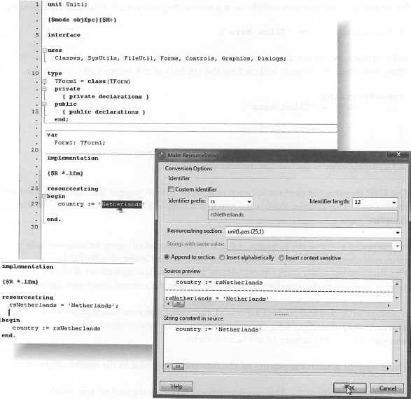 Edit ⇒ Sort selection은 선택한 에디터 텍스트를 여러 방식으로 정렬하도록 해준다. Pascal은 소스 코드 내 키워드의 순서와 관련해 특정 규칙을 따르기 때문에 (begin이 먼저 오고 뒤에 end가 붙는다) 프로시저 내에서 코드를 알파벳순으로 정렬하는 것은 의미가 없다.