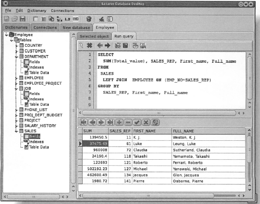 위의 패키지들은 IDE에 설치될 필요는 없으나 설치한다면 컴파일 시 필요한 유닛의 경로가 컴파일러 경로로 추가되도록 보장할 수 있다. lazdatadesktop 프로젝트를 열고 컴파일할 경우 바이너리 작업(working binary)을 야기한다. 라자루스 데이터 데스크톱이 시작되면 그림 12.15와 같은 폼이 나타날 것이다.