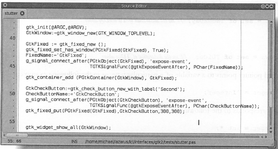 컴파일러는 GNU gdb 디버거용 디버깅 데이터를 생성한다. 이는 라자루스 IDE가 배경에서 사용하는 명령 행 도구이다. gcc는 해당 데이터를 공급하므로 복합 언어 프로그램의 디버깅도 어느 정도 가능하다. 하지만 라자루스 디버거는 C 소스 코드 파일을 처리할 수 없다.