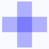 이 코드는 광범위하게 이해하기가 훨씬 쉽습니다. 그 이유는 우리는 개별적 메소드(the private method)에 의미있는 이름들을 부여했기 때문입니다. 여러분이 두 번째 두 번째 문제를 인식하신 내용은 매우 단순한 형태의 문제입니다: 십자가의 중앙에 있는 영역은, 모두 수평 수직 막대 아래에 있으며, 두 번 그리기 되었습니다. 이 사실은 우리가 불투명한 색상으로 십자가를 채울 때 문제가 되지 않지만, 그림 11.4에 보이는 것 처럼, 만약 우리가 반 투명 십자가를 그릴 때에는, 즉시 분명한 버그가 생깁니다.