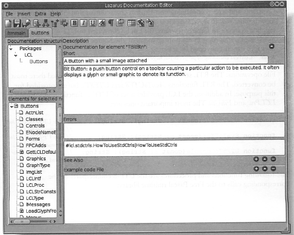 라자루스 0.9.24 버전에서는 다큐멘테이션 에디터(Documentation Editor)가 소개되었는데, 이는 XML 요소를 간편한 트리 구조로 표시하여 다수의 FPDoc XML 파일을 편집하는 데 사용된다. IDE용의 간단한 통합 에디터도 포함되어 있으며, 소스 코드에서 선택된 식별자에 상응하는 FPDoc XML 파일 내 엔트리를 보여주고 간단한 변경을 허용한다.