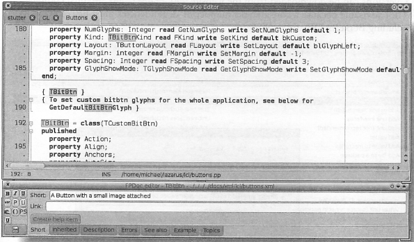 그 이후로 통합 에디터는 확장되어 현재 FPDox XML 파일을 자동으로 생성하여 거의 모든 속성을 편집할 수 있게 되었다. FPDoc 에디터는 View ⇒ FPDoc Editor를 선택하여 표시할 수 있다. 커서가 소스 코드 내 식별자에 위치한 경우, 에디터가 처음에는 해당 엔트리가 아직 존재하지 않는다고 표시한다. Create help item 버튼을 클릭하면 디렉터리 대화창이 열린다.
