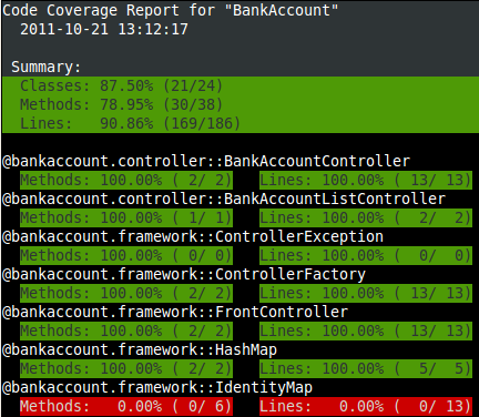 Figure 18.1 Command-line 의 색을 사용한 code coverage 출력
