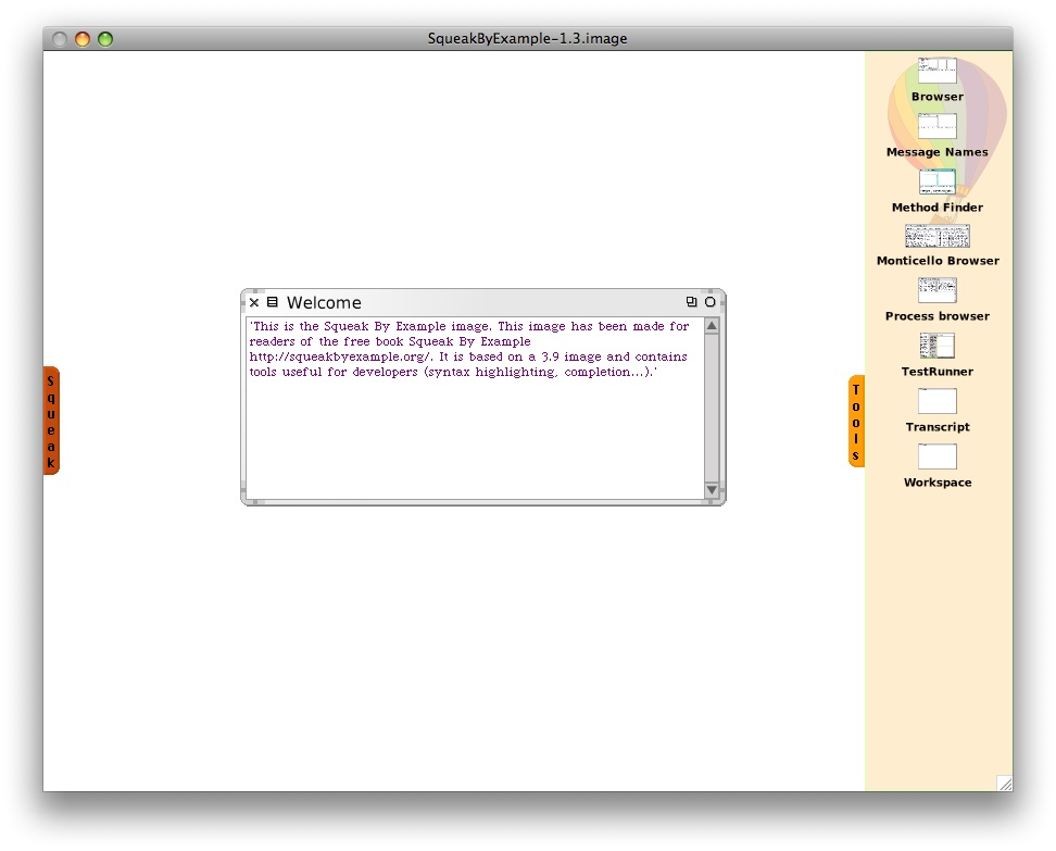처음 스퀵을 시작할 때, 스퀵 가상 머신은 여러분이 제공하는 image 파일을 불러옵니다. 이 파일은 이전에 존재하는 수많은 양의 코드와 다수의 프로그래밍 도구(이 모든 것은 객체입니다)를 포함한 다수의 객체에 대한 스냅샷을 포함하고 있습니다. 스퀵으로 작업을 할 때, 이러한 객체들에 메시지를 보내고, 새로운 객체들을 만들 것이며, 이 객체중 일부는 수명을 다하여 없어지고 그 오브젝트의 메모리를 되돌릴 것입니다. (예, 가비지garbege 수집)