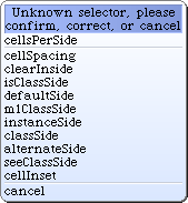 initialize 메서드에 대한 내용을 accept 했을 때, "확인(confirm), 수정(correct) 또는 취소(cancel)" 를 물어보는 다이얼로그가 뜨게되는데, 이런 현상은 스퀵이 요청한 이름을 가진 메서드가 정의되지도 않았을때, cellsPerSide 라는 메시지를 보내기 때문입니다. 걱정하지 마세요. 이런 방법은 아직 정의되지 않은 다른 메서드로 작업을 진행하는 좋은 방법입니다. 왜 일까요? 글쎄요, initialize 메서드를 작성하기 전에 먼저 필요성을 느낀것도 아니기 때문에, 상황이 발생되었을때 의미있는 이름을 부여하고 작업의 흐름을 방해하지 않고 작업을 계속 진행할 수 있습니다.